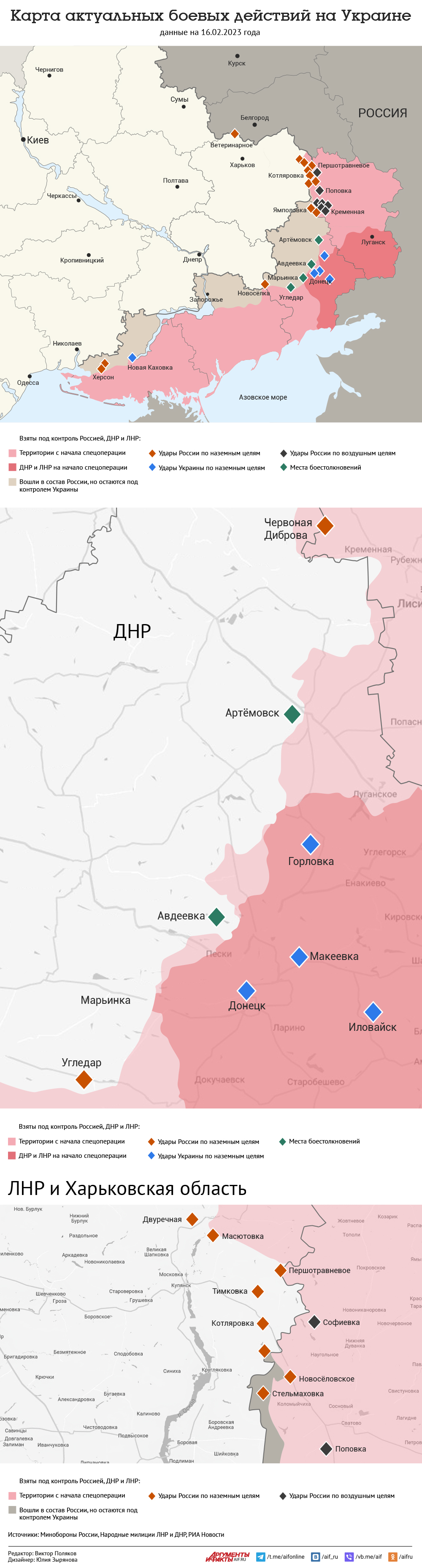 Карта боевых действий на Украине на 16 февраля. Инфографика