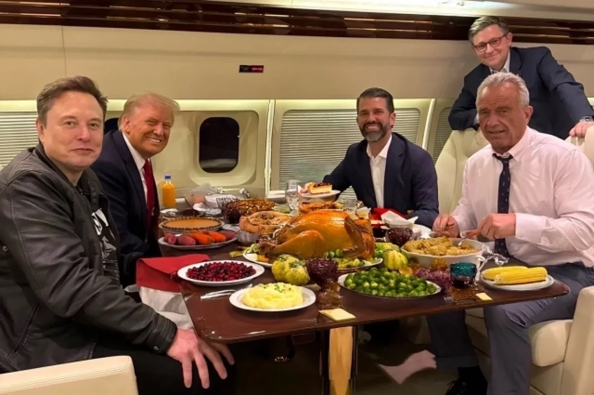 Министр здравоохранения и социальных служб США Роберт Кеннеди-младший опубликовал в соцсети X* поздравление с Днем благодарения, сопроводив его фотографией, на которой запечатлены президент Соединенных Штатов Дональд Трамп и бизнесмен Илон Маск во время совместного ужина на борту самолета.