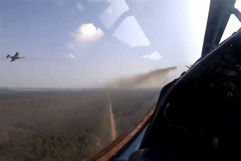 «Экипажи штурмовиков Су-25СМ Центрального военного округа выполнили боевую задачу по уничтожению опорного пункта ВСУ в зоне поведения специальной военной операции. Огибая рельеф местности на скорости около 800 км/час и на предельно малой для машин высоте — 20 метров, летчики штурмовиков накрыли очередной опорный пункт националистов пуском авиационных неуправляемых ракет», — уточнили в военном ведомстве.