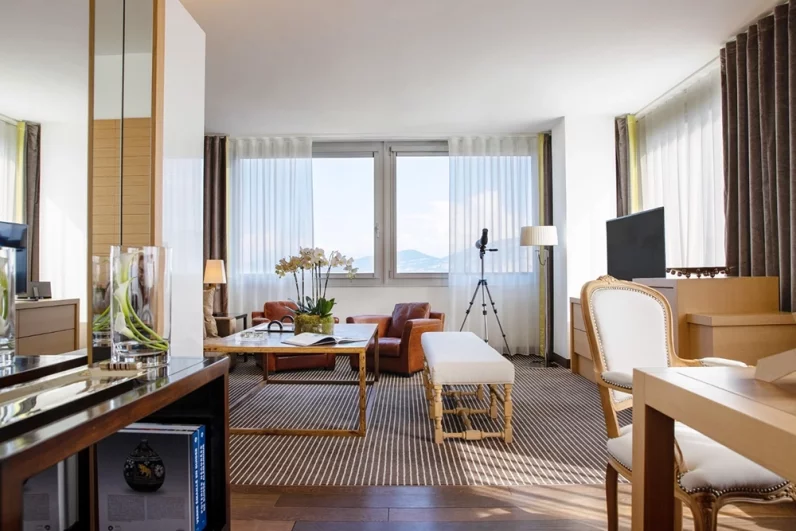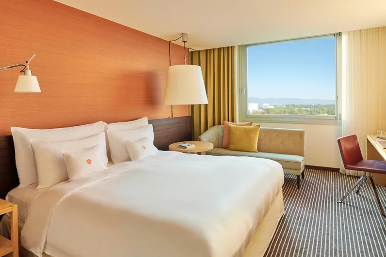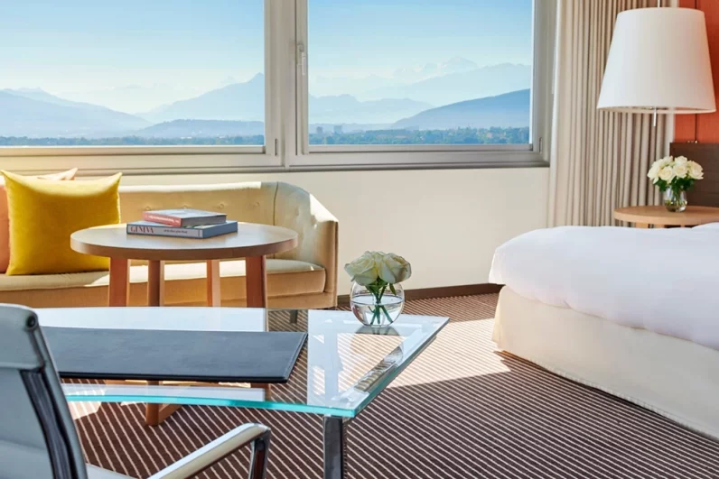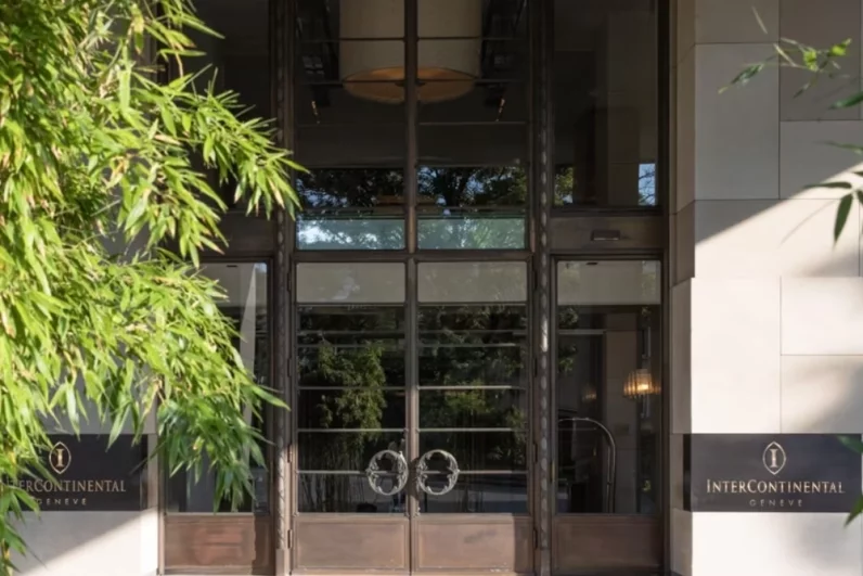 Intercontinental Geneva был построен в 1964 году. Это крупнейший гостиничный комплекс в городе. В нем 333 номера, в том числе 56 люксов и 16 конференц-залов, а также 2 ресторана, спа и бассейн. Из отеля открывается прекрасная панорама на город и на Женевское озеро.