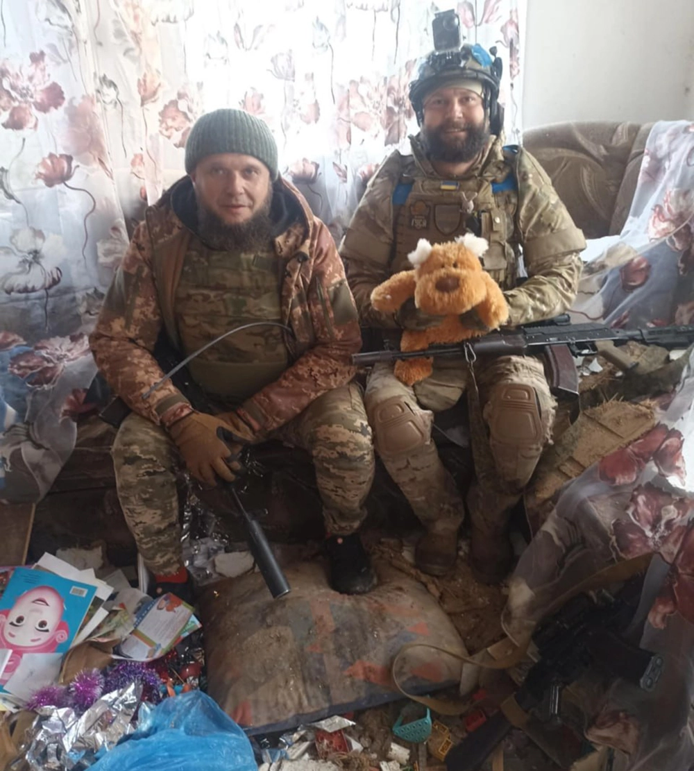 На еще одном снимке боевик держит плюшевую игрушку — собаку. При этом он находится в каком-то доме, где, судя по окружению, он вместе с другими боевиками разгромил детскую комнату. А на другом кадре вояка нацепил на себя медаль «За отличную службу».