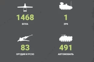 Ежедневная статистика боевых потерь украинской армии за сутки: убитые военнослужащие, уничтоженные БПЛА и ЗРК, танки, орудия полевой артиллерии и минометы, специальной автомобильной техники. Данные Минобороны РФ.