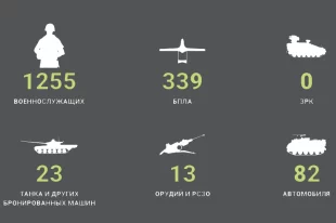 Ежедневная статистика боевых потерь украинской армии за сутки: убитые военнослужащие, уничтоженные БПЛА и ЗРК, танки, орудия полевой артиллерии и минометы, специальной автомобильной техники. Данные Минобороны РФ.