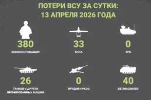 Минобороны РФ опубликовало данные о потерях ВСУ за 13 апреля 2026 года. Противник не досчитался 380 военнослужащих.