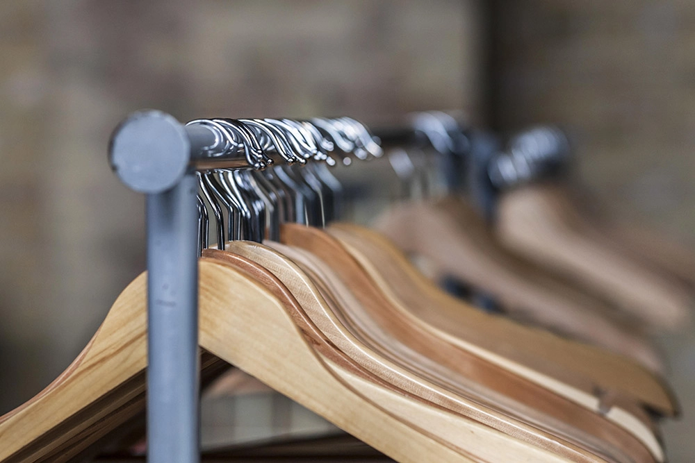 Для верхней одежды и костюмов подойдут прочные деревянные или бархатные вешалки с широкими плечиками. Они помогают сохранить форму пиджаков, пальто и жакетов, предотвращая заломы и растяжения ткани. Деревянные вешалки также добавляют эстетики и солидности в гардероб.