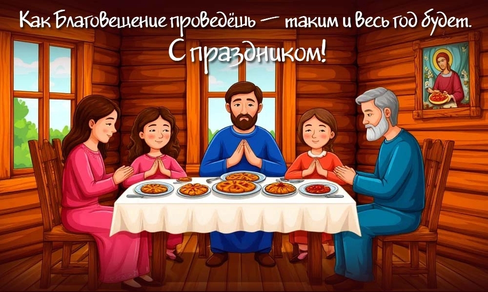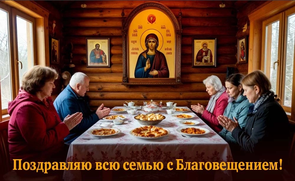 В праздник Благовещения хочется разделить радость с друзьями и близкими. Соберите всех за праздничным столом – в этот день даже тем, кто держит Великий пост, можно есть рыбу и икру, а также пить вино. А если такой возможности нет – позвоните по родным или отправьте им красивые картинки и открытки из нашей коллекции.