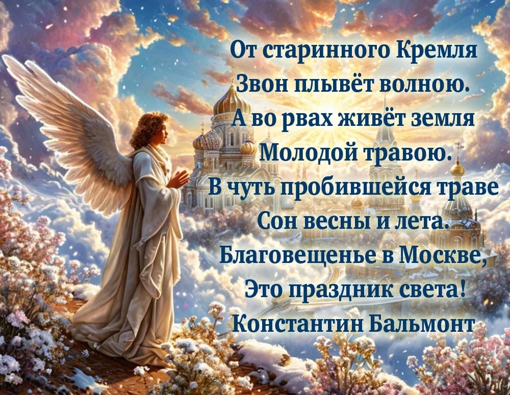Помимо поздравлений мы собрали стихи русских поэтов о Благовещении. Открытки с этими вечными строками можно послать директору, бухгалтеру или менеджеру, воспитателю детского сада, школьному учителю или преподавателю в вузе. Эти открытки помогут вам наладить контакт и поделиться частичкой душевного настроения.