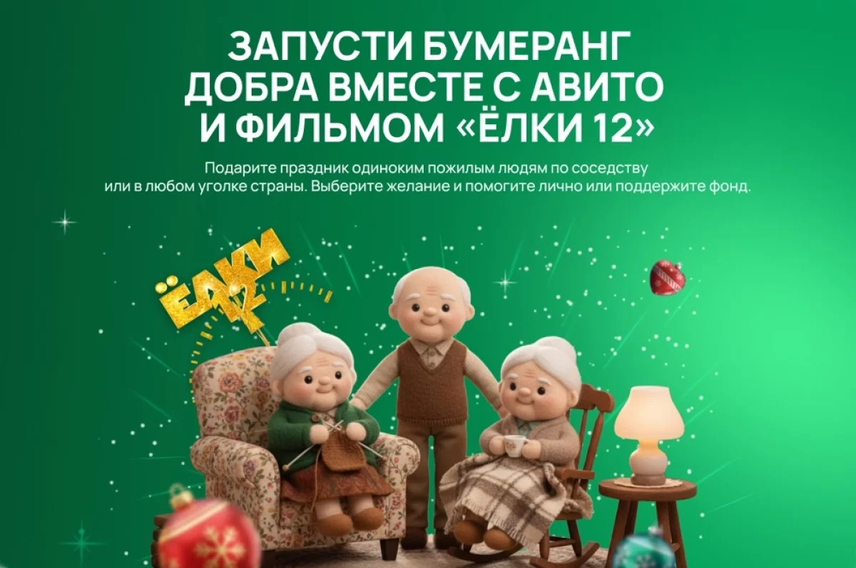 Технологическая платформа Авито и создатели фильма «Ёлки 12» запустили социальный проект «Серебряные желания». Инициатива направлена на поддержку подопечных фондов «Старость в радость» и «Операция Бабушка».