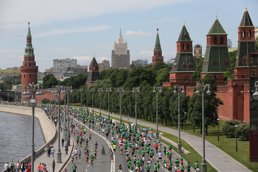 В Москве старт и финиш пройдут на Васильевском спуске. В программе — дистанции на 500 м (для детей), 4,2 км (в том числе в командном зачёте), 10 км (включая отдельный зачёт для людей на инвалидных колясках), 21,1 км и 42,2 км, а также впервые — скандинавская ходьба на 4,2 км.