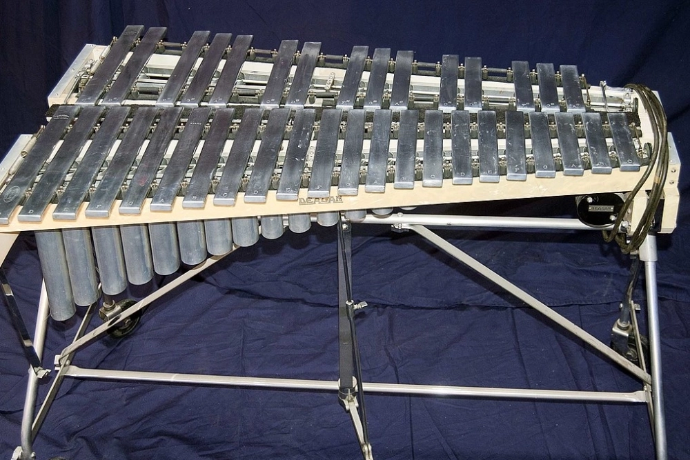 Вибрафон, пластины которого сделаны из алюминия, имеет самый продолжительный, бархатистый и певучий звук с характерной пульсацией (вибрато), которую создают вращающиеся диски в резонаторах; он оснащён демпферной педалью, что позволяет управлять длительностью ноты, и стал ключевым инструментом в джазе.