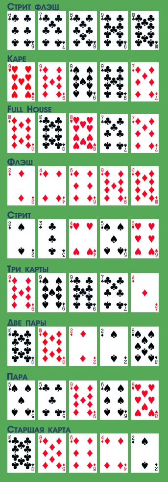 Прежде чем изучать правила различных видов покера, стоит запомнить основные покерные комбинации, которые используются почти во всех вариантах игры: