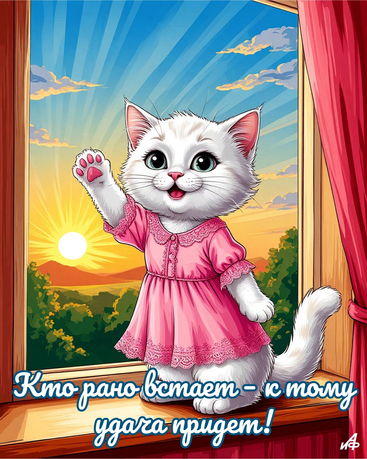 Вы можете добавить сообщение от себя, и вложить в эти слова всю нежность и заботу. Но можно просто скачать и отправить милую открытку и наилучшие пожелания. Нажмите кнопку «Скачать» и сохраните понравившуюся картинку в своем телефоне, планшете или компьютере. А потом отправляйте, но только не слишком рано. Помните: даже самая красивая открытка, которая прилетит раньше, чем прозвонит будильник, может вызвать совсем не ту реакцию, на которую вы рассчитывали.