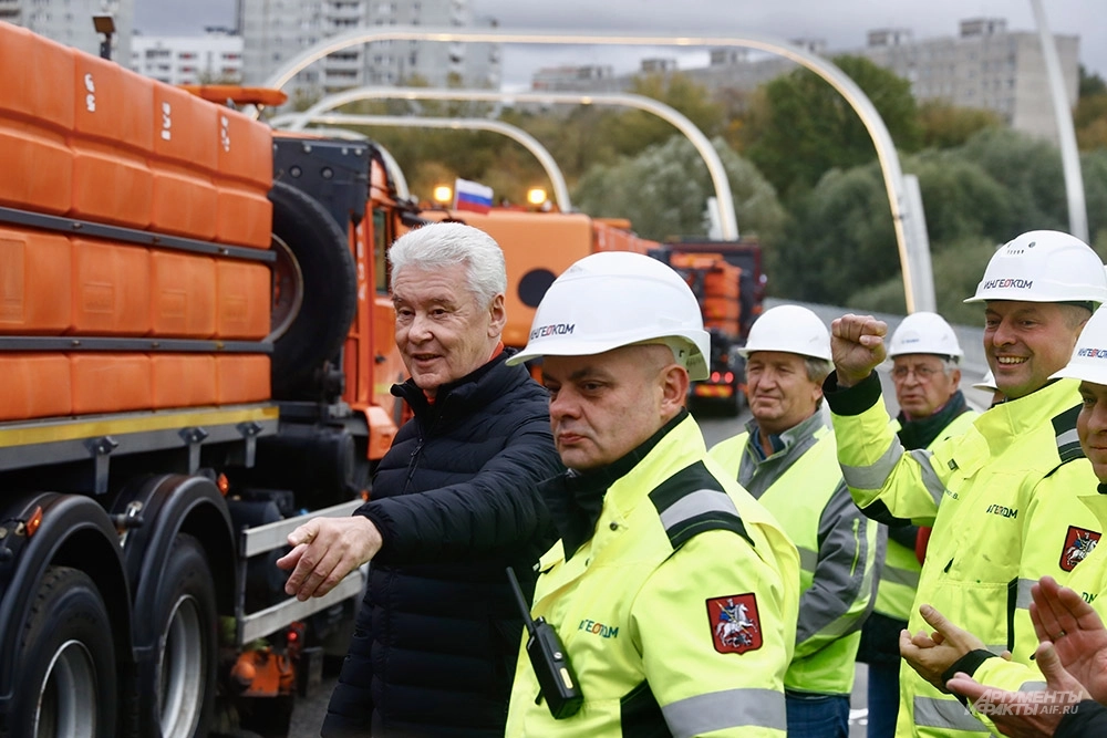 25 сентября 2025 год. Мэр Москвы Сергей Собянин лично дал команду к пробегу строительной техники по новому мосту между улицами Лобачевского и Мосфильмовской. Фото: АиФ/ Игорь Харитонов