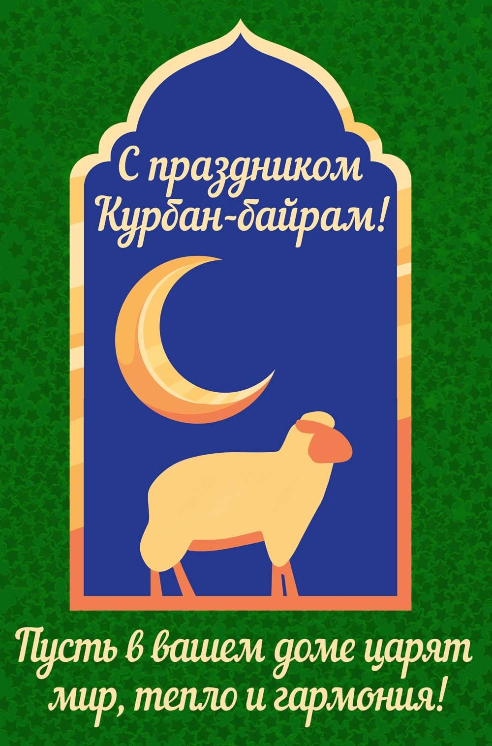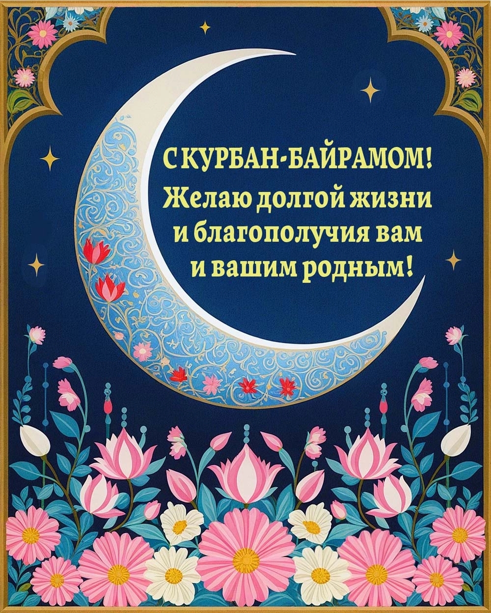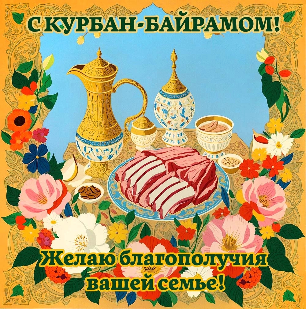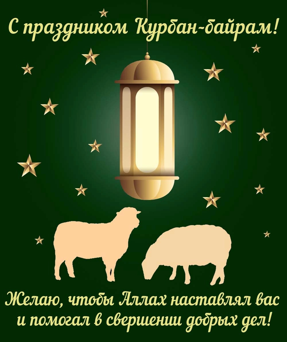 Курбан-байрам — замечательное время для укрепления семейных и дружеских связей. Поздравительные открытки с пожеланиями понравятся вашим родителям, бабушкам, дедушкам, а также братьям, друзьям и коллегам по работе— отправляйте их родным и близким, всем, с кем хотите поделиться теплом своего сердца.