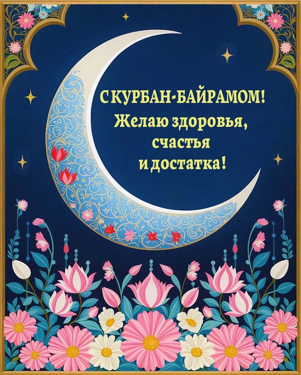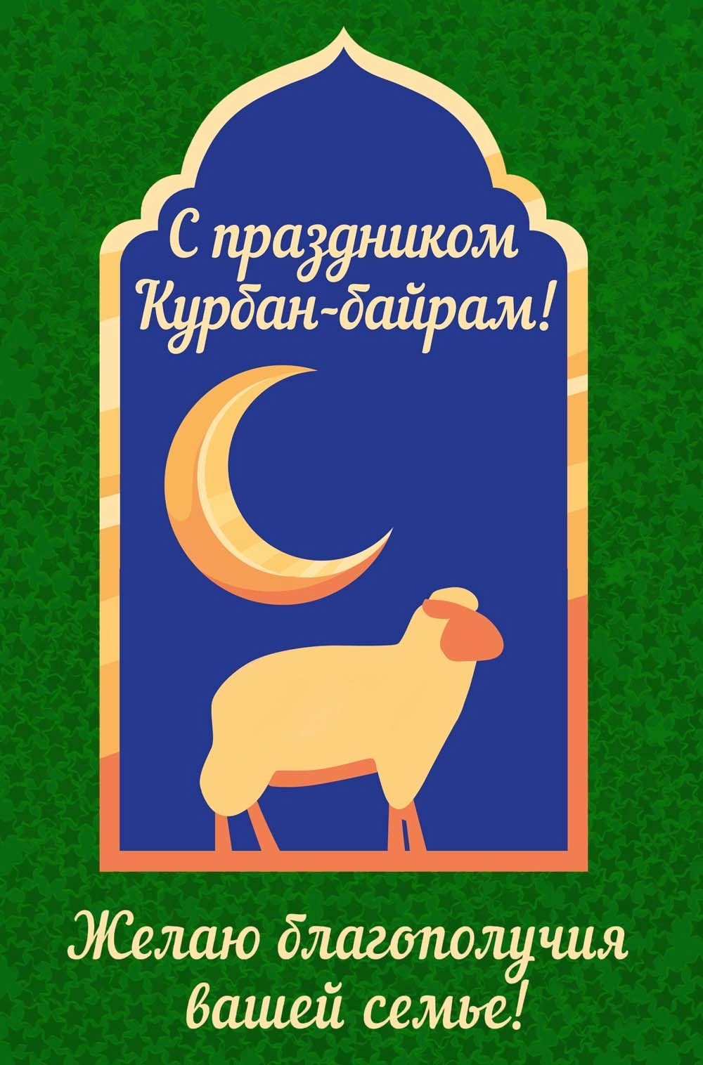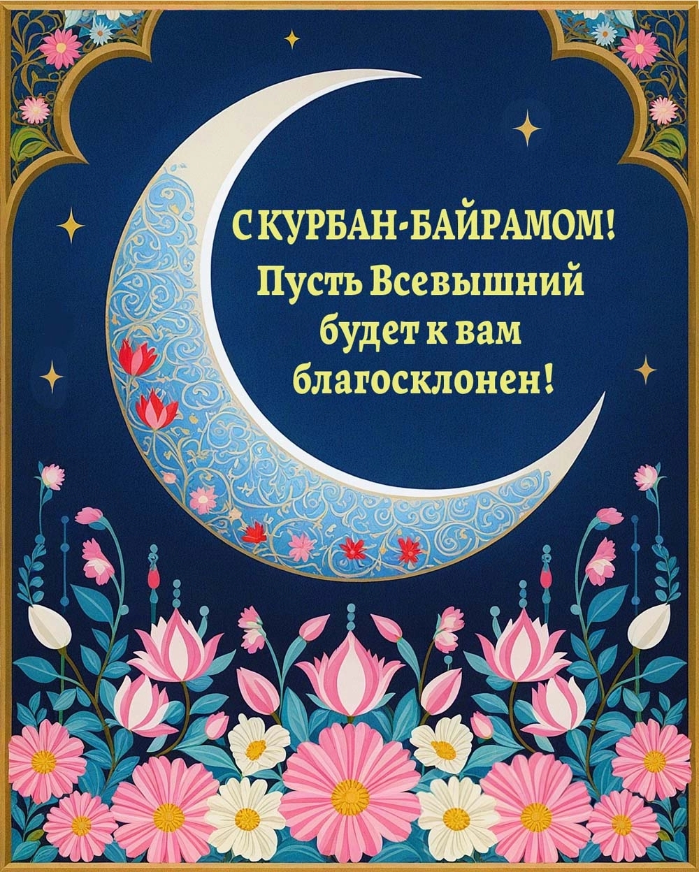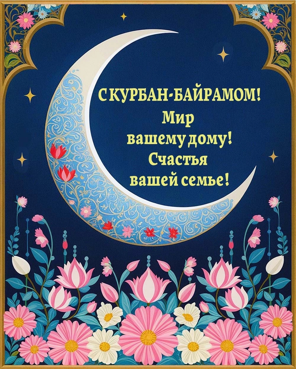 Курбан-байрам — замечательное время для укрепления семейных и дружеских связей. Поздравительные открытки с пожеланиями понравятся вашим родителям, бабушкам, дедушкам, а также братьям, друзьям и коллегам по работе— отправляйте их родным и близким, всем, с кем хотите поделиться теплом своего сердца.
