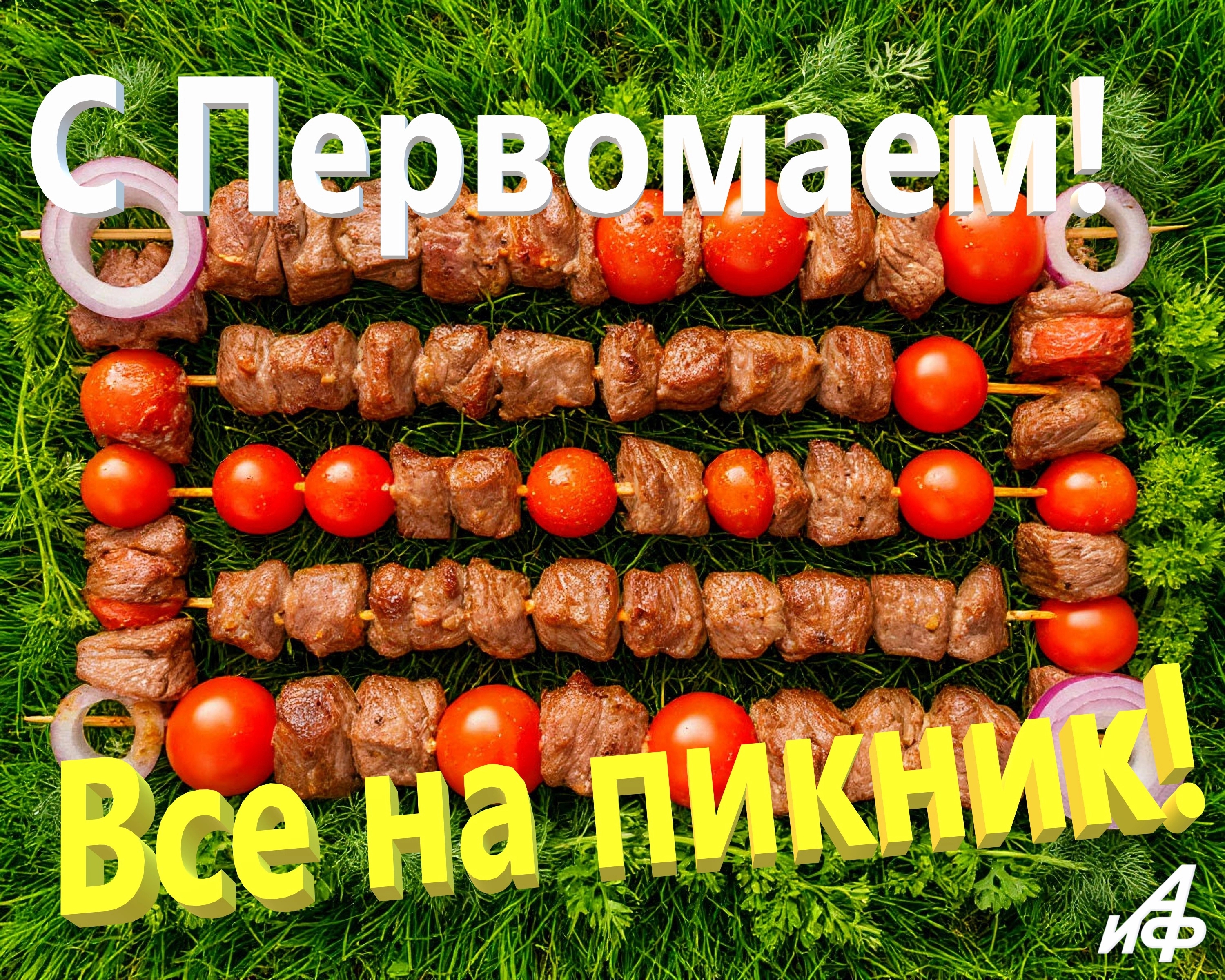Весенние шашлыки на свежем воздухе – одна из главных традиций Первомая. Причем в любую погоду: ни дождь, ни снег (а бывало и такое), ни ураган – не помеха. Ну правда же? Вот поэтому в нашем наборе праздничных открыток так много приглашений на шашлыки. Скачайте и отправляйте всем, кого вы хотите собрать за праздничным столом.