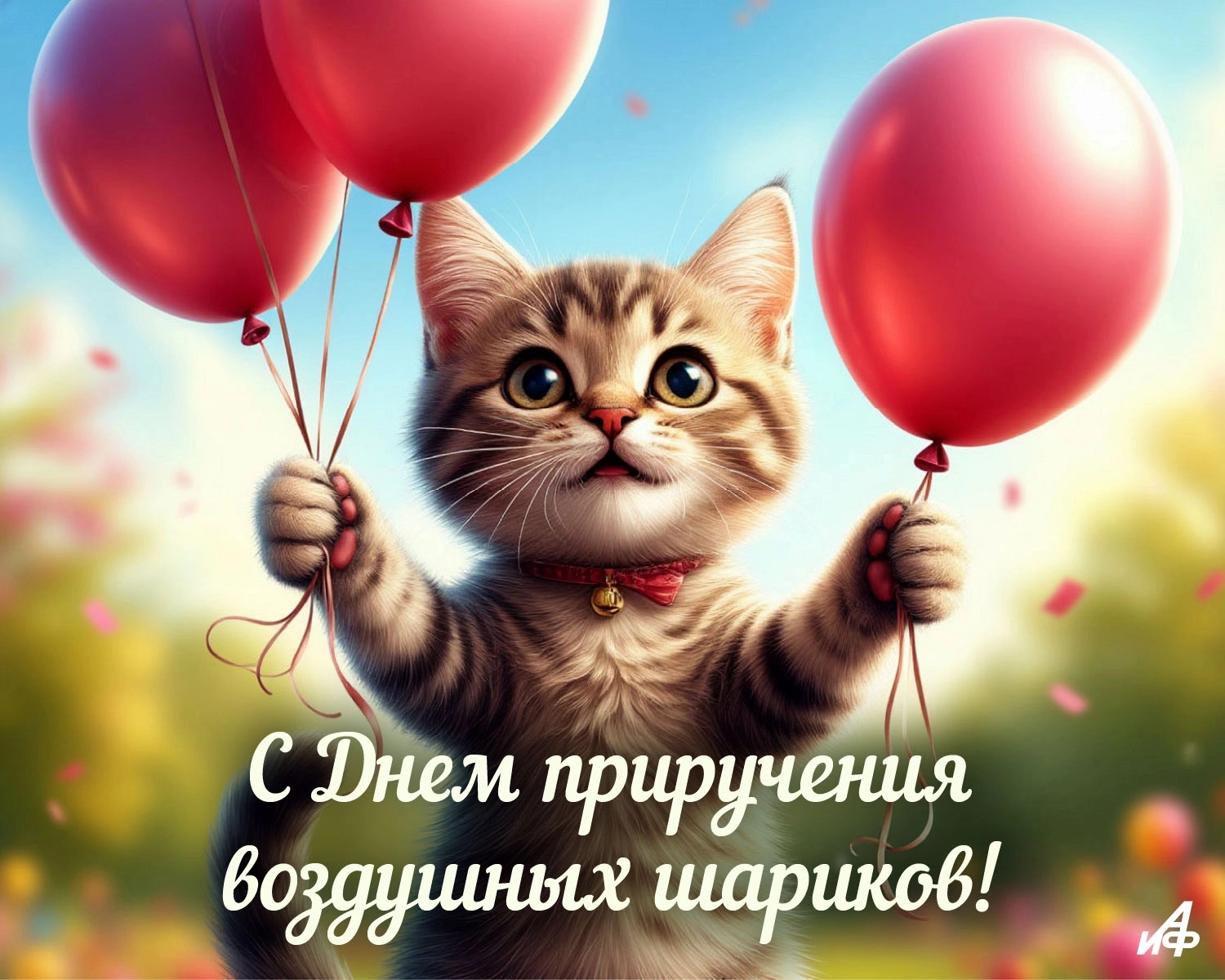 Если и еще один праздник, который выпадает на эту дату - День приручения воздушных шариков. Тут милота должна просто зашкаливать, поэтому мы добавили на открытку еще и котика.