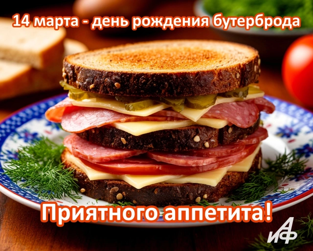 День рождения бутерброда также отмечается 14 марта. Тут, как говорится, на вкус и цвет - товарищей нет. Пусть каждый сделает себе именно тот бутерброд, который считает идеальным. А открытка вовремя напомнит об этом.