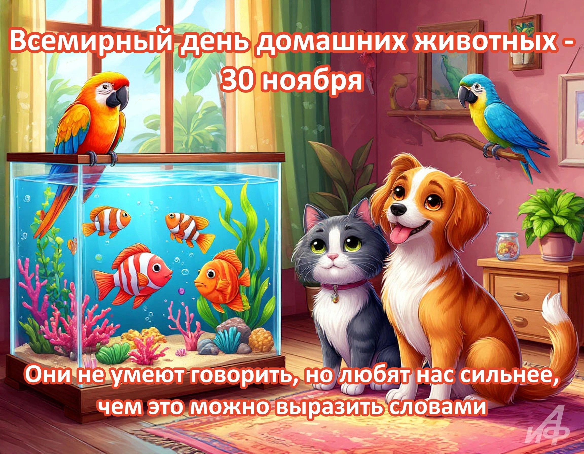 Пушистые друзья делают нашу жизнь лучше. Обнимите питомца во Всемирный день домашних животных и не забудьте лишний раз сказать ему «спасибо». А открытку отправьте всем, у кого дома живут собаки, кошки, птички, рыбки и другие любимцы.