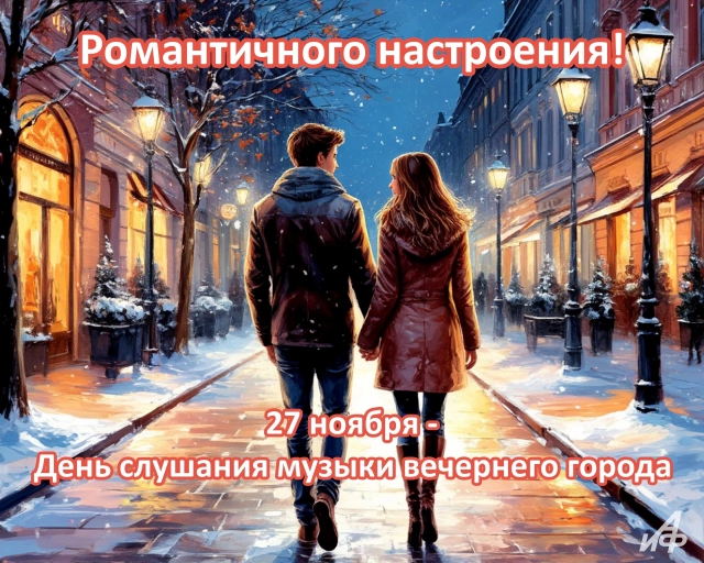 День слушания музыки вечернего города также отмечается 27 ноября. Закройте глаза и прислушайтесь: улицы, парки и площади звучат совершенно по-особенному! Этот праздник создан для мечтателей и для романтических прогулок.