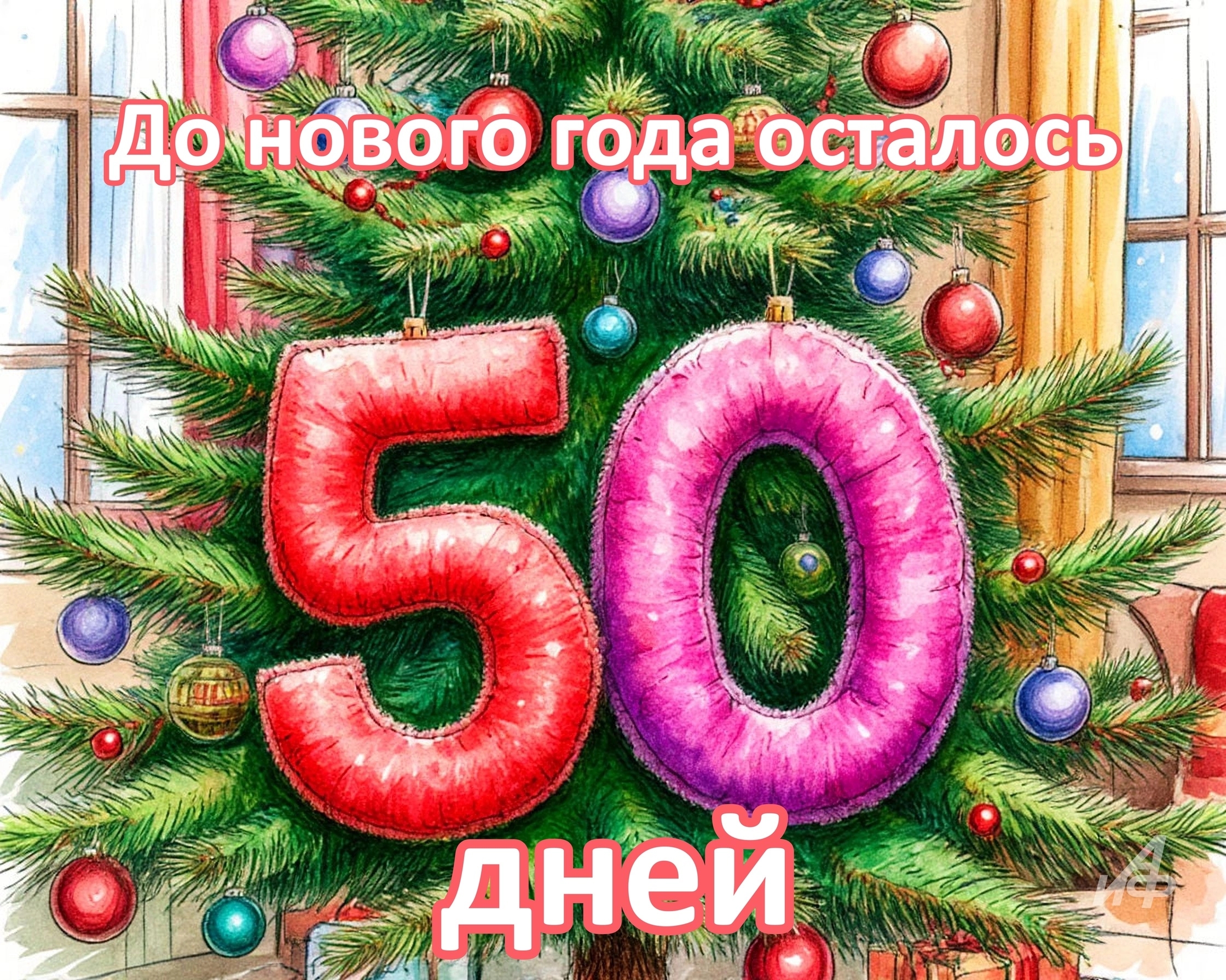 До Нового года осталось 50 дней! На самом деле, не так уж и много, чтобы все-все успеть и создать идеальный праздник. Отправьте эту открытку тому, что долго запрягает и всегда спохватывается в последний момент - напомните, что обратный отсчет до 2026 года уже стартовал. Эта открытка также порадует всех, кто уже устал от работы, а все дни отпуска растрачены и остается только ждать новогодних каникул.