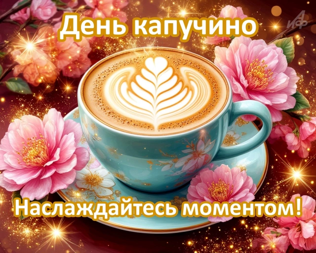 Капучино - один из самых популярных кофейных напитков в мире. Нежная пенка, волшебный аромат и хорошая компания - вот рецепт идеального вечера. Поделитесь открыткой с тем, кто не представляет своей жизни без чашки бодрящего напитка. 8 ноября - праздник для всех любителей капучино.