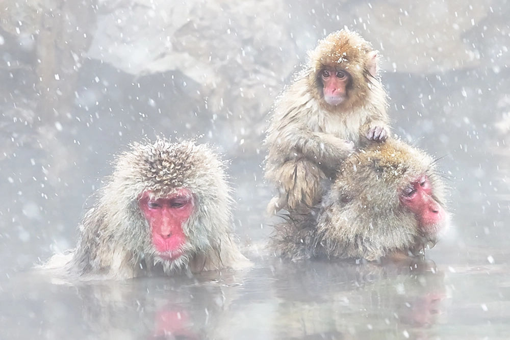 Сегодня можно наблюдать, как целые семьи снежных обезьян нежатся в горячих источниках, поддерживая температуру тела в комфортном режиме, несмотря на снег вокруг. Они проводят в воде до нескольких часов, особенно в самые холодные дни, когда температура опускается значительно ниже нуля.