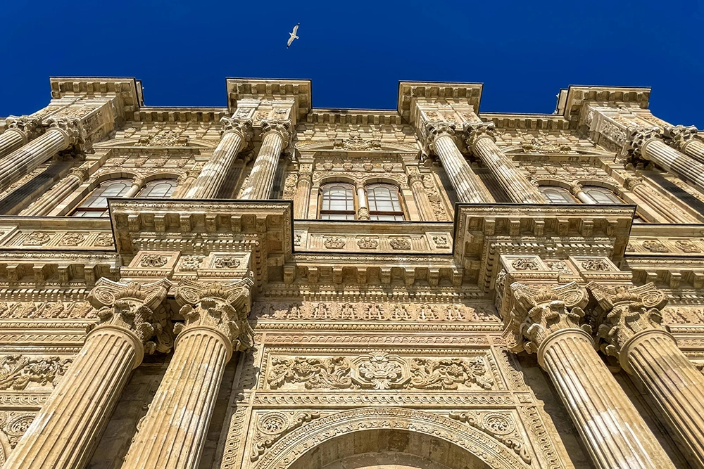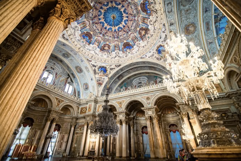 Главный фасад выполнен в барочном стиле с пышной лепниной и коринфскими колоннами. На отделку ушло 14 тонн золота – этого количества хватило бы, чтобы позолотить купола всех стамбульских мечетей!