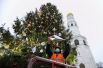 На Соборной площади Кремля украсили главную новогоднюю елку России. Ее срубили в подмосковном Наро-Фоминске 9 декабря и через несколько дней отправили в Москву. 96-летняя ель — высотой около 25 метров, с диаметром ствола в 60 сантиметров и размахом нижних ветвей в 10 метров. Елку оформили по мотивам сказки «Морозко», белыми, золотыми и серебряными игрушками.