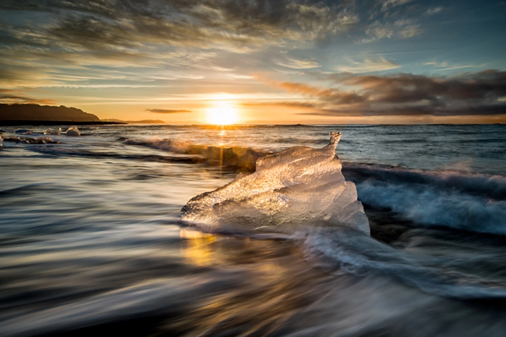 Одним из самых интересных и посещаемых туристами мест в Исландии является знаменитый Алмазный пляж, протянувшийся на пять километров вдоль Атлантического океана. Пляж покрыт мелким черным гравием и черными валунами. Тут есть своя изюминка. Согласно легенде раньше эти валуны были троллями, которые не успели укрыться от солнечных лучей и окаменели.