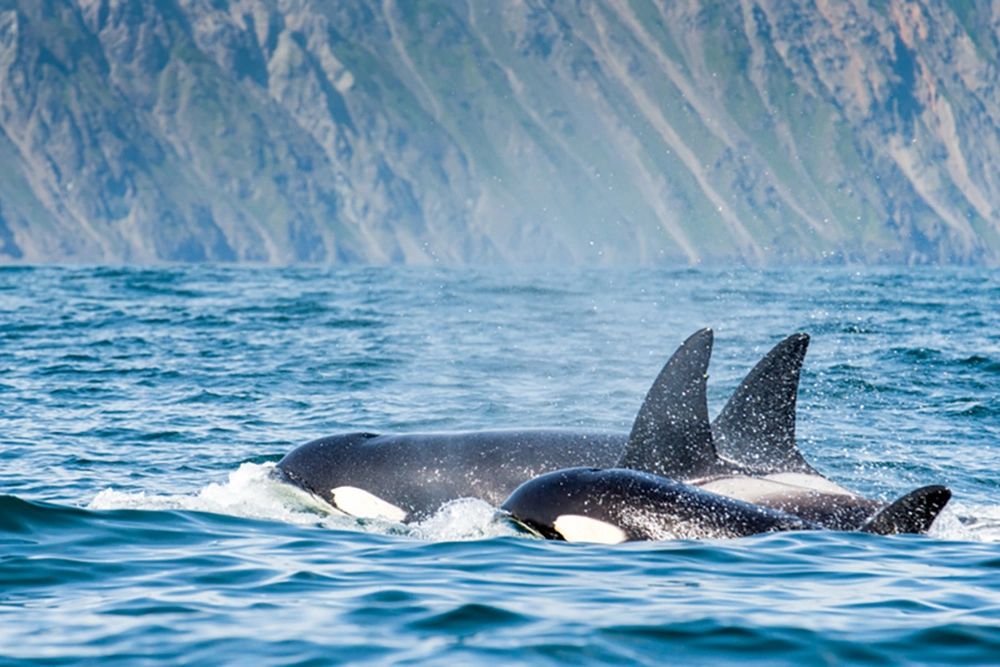Когда на горизонте всплывает плавник, режущий воду, будто нож, становится ясно — рядом косатки. Их называют «морскими волками», и не случайно. Косатки — самые умные и организованные хищники среди морских млекопитающих. У берегов Командорских островов их можно встретить в любое время года, но чаще — летом, когда море богато рыбой и детёныши уже подросли.