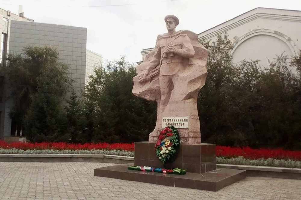 32. Монумент «Пограничникам Забайкалья» в Чите открыт в 2001 году. Скульптура представляет собой 10-метровую фигуру воина-пограничника, который зорко следит за порядком на границах Родины.
