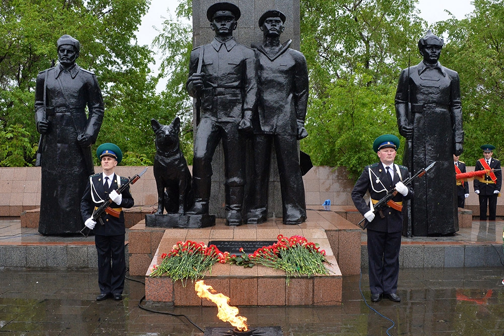 10. «Памятник пограничникам — защитникам рубежей Отечества» в Астрахани расположен на Петровской набережной. Монумент был открыт 27 мая 2017 года, в канун Дня пограничника. Гранитный обелиск высотой более 8 метров стилизован в виде пограничного столба.