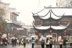 Древнюю столицу Китая город Нанкин укрыло снегом. Зрелище для местных жителей непривычное, поэтому многие поспешили устроить фотосессию рядом с одной из главных достопримечательностей — заснеженного храма Конфуция.