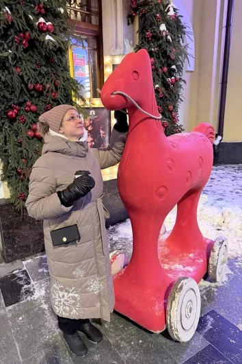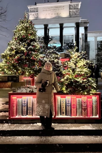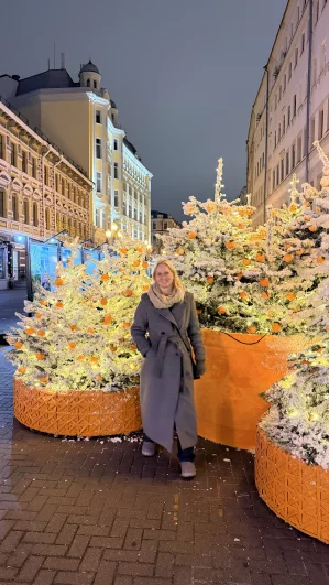 Участники фотографируются с мандариновыми весами на ВДНХ, снеговиками на Лубянке и на фоне фантастически красивых елок на площадках фестиваля «Путешествие в Рождество». Посмотрите, какая красота!