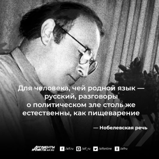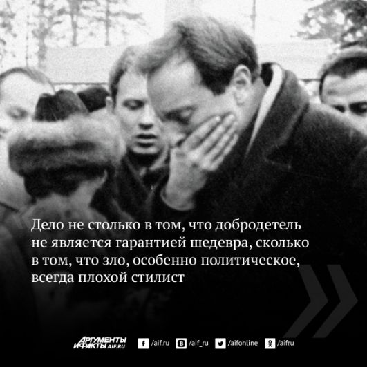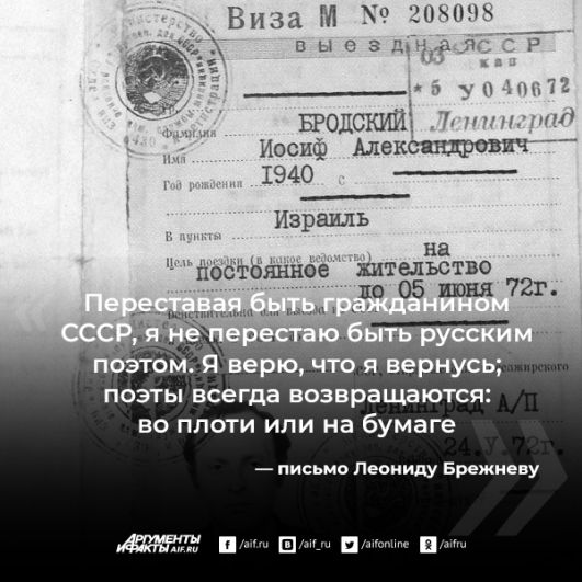 А вот это для Бродского было уже нестерпимо: «Дом не перестает быть родным. Как бы ты в нём — хорошо или плохо — ни жил. И я совершенно не понимаю, почему от меня ждут, а иные даже требуют, чтобы я мазал его ворота дёгтем. Россия — это мой дом...»