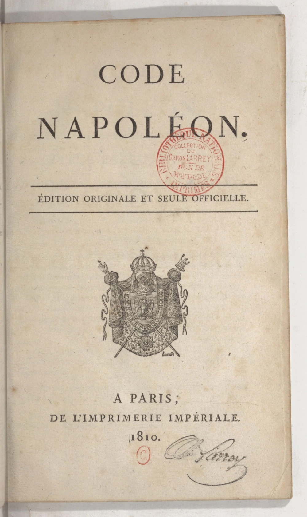 Кодекс Наполеона — это кодифицированный законодательный акт, созданный во Франции в начале XIX века. Официальное название документа — Гражданский кодекс Франции (фр. Code civil des Français). Название «Кодекс Наполеона» он получил в честь Бонапарта, который в то время был первым консулом и фактически управлял Францией. Кодекс стал одним из самых значимых законодательных актов в истории, оказав глубокое влияние на развитие гражданского права во многих странах по всему миру.