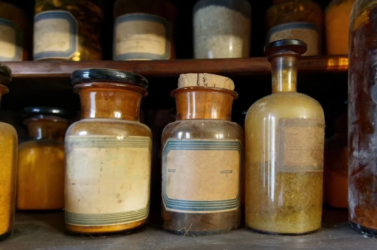 «Так как это начало 1900-х, синтетики на тот момент не было. Все ткани натуральные: мех, хлопок, лён, шерсть, шёлк. Соответственно, на них охотилась моль. С наступлением тепла все вещи убирали в шкаф или сундук до следующих холодов, и, чтобы сохранить их состояние, использовали нафталин от насекомых. Скипидар и камфора нужны были для растирания при радикулите и простуде. Листья пачули использовали как парфюм. А „минералка“ была отличным средством от диареи для восстановления солевого баланса», — объяснил Андрей Звонков.