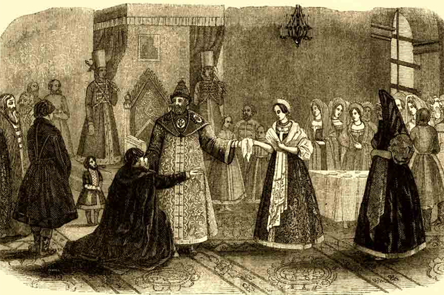 Другое дело, что и Морозова была вынуждена, как говорится, пойти на принцип. Незадолго до царской свадьбы, в декабре 1670 года, боярыня приняла тайный монашеский постриг. Естественно, по правилам старого обряда. А на царской свадьбе, как стало известно заранее, предполагалось чтение стихов. Ладно, духовного содержания — это даже поощрялось. Но чтобы светского? Это было не только грубейшее нарушение «чина свадьбы царёвой», но и покушение на вековые устои. Чего, в свою очередь, не могла терпеть уже боярыня-монашенка Морозова.