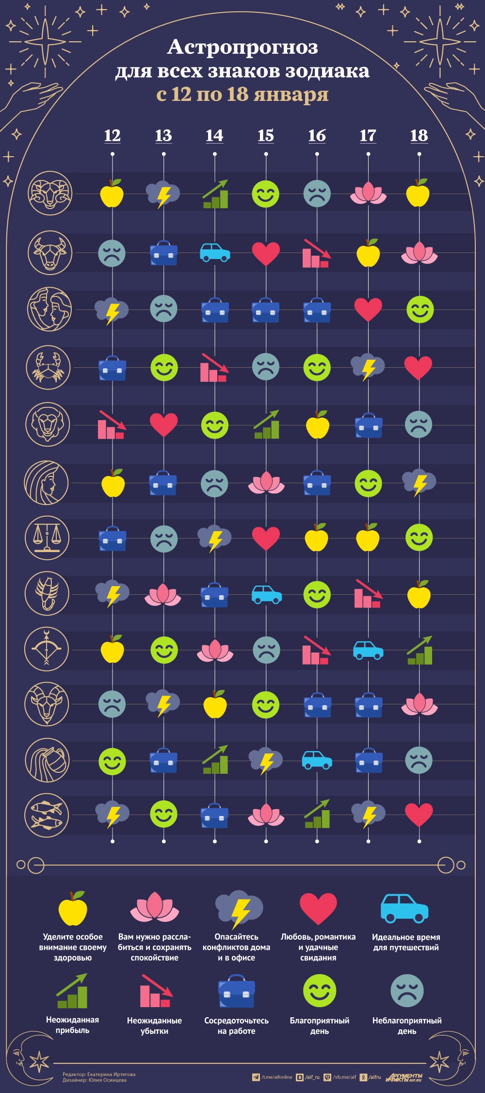 Астрологический прогноз с 12 по 18 января 2026 года. Инфографика