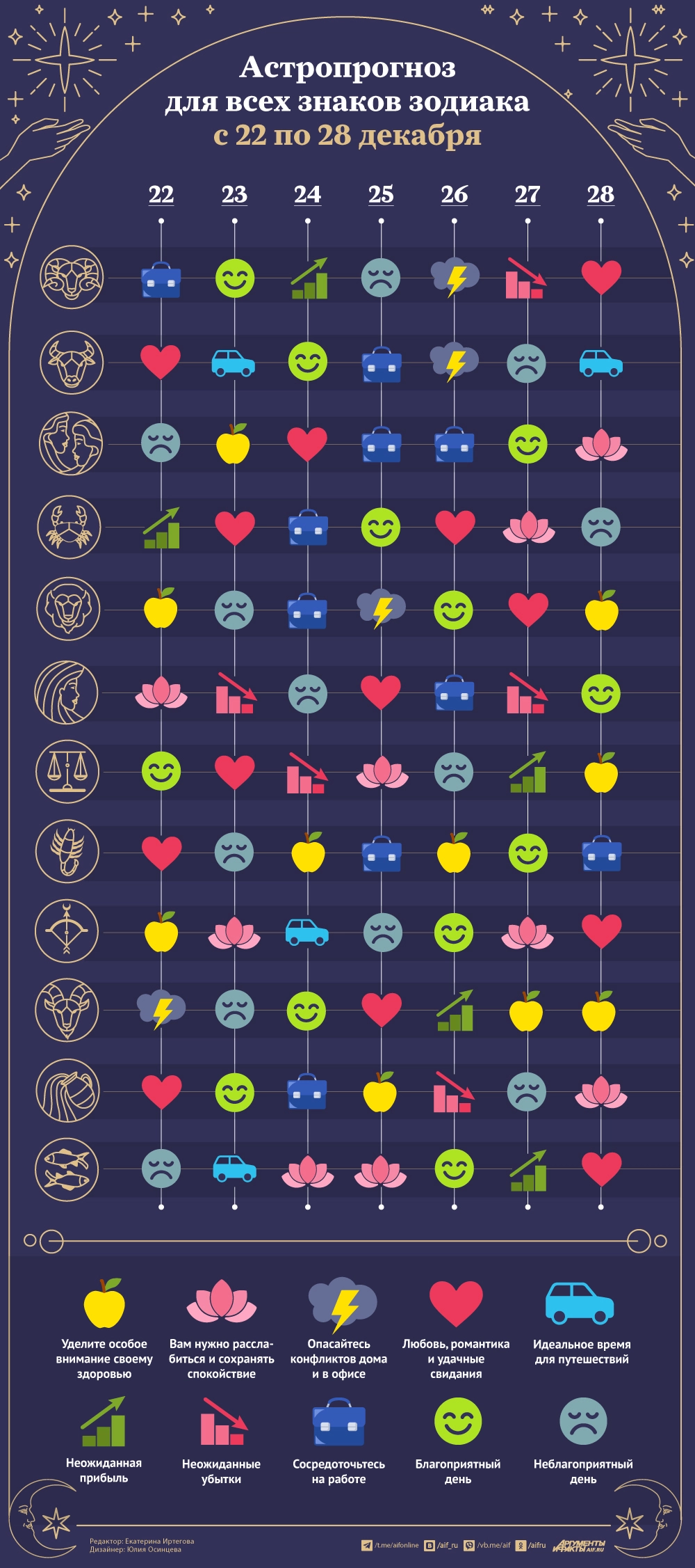 Астрологический прогноз с 22 по 28 декабря 2025 года. Инфографика
