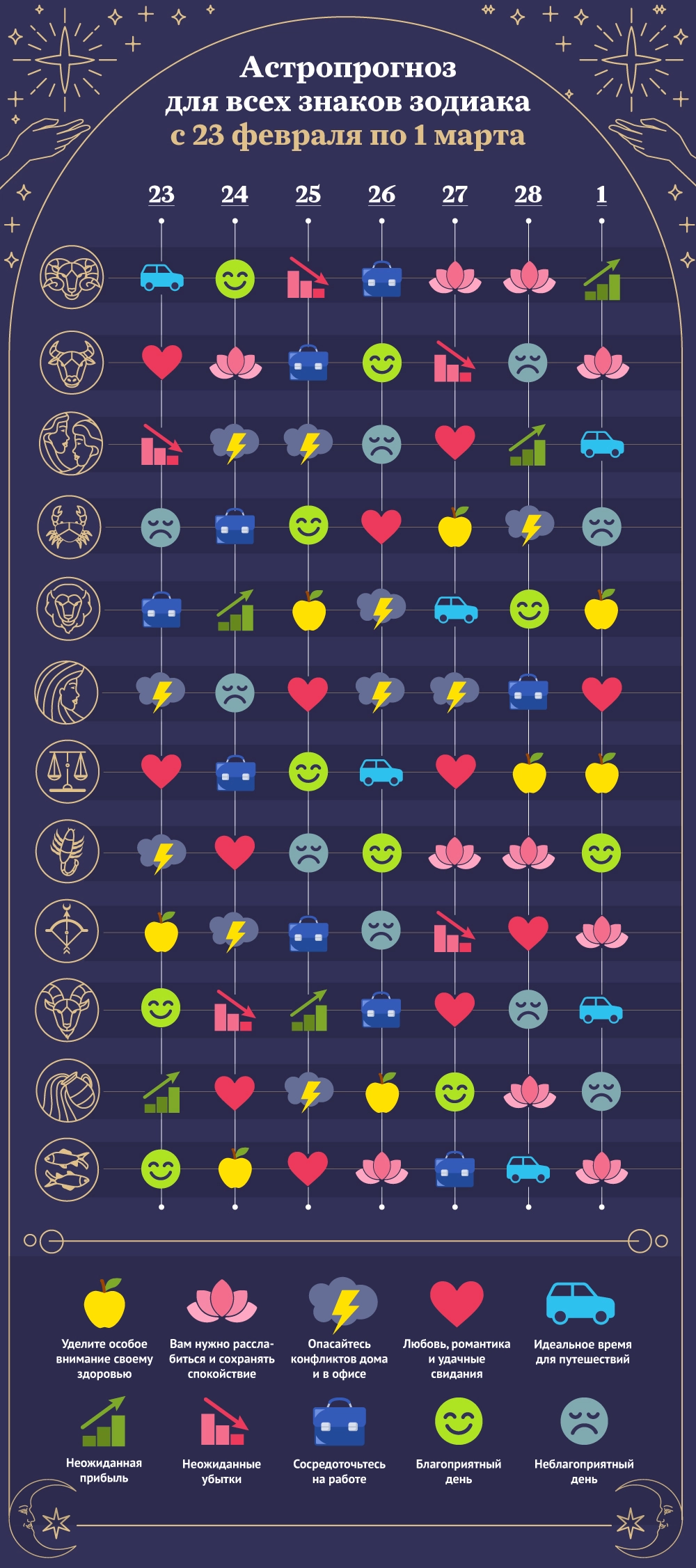 Астрологический прогноз с 23 февраля по 1 марта 2026 года. Инфографика