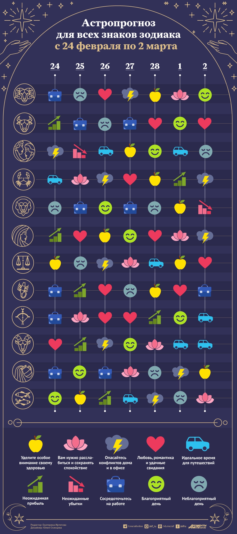 На этой неделе будет много любви и спокойствия. Запасайтесь положительными эмоциями впрок, потому что в воскресенье начинается ретроградный период у Венеры. А это серьезное испытание для любых отношений. Благоприятные и неудачные дни — смотрите в инфографике aif.ru.