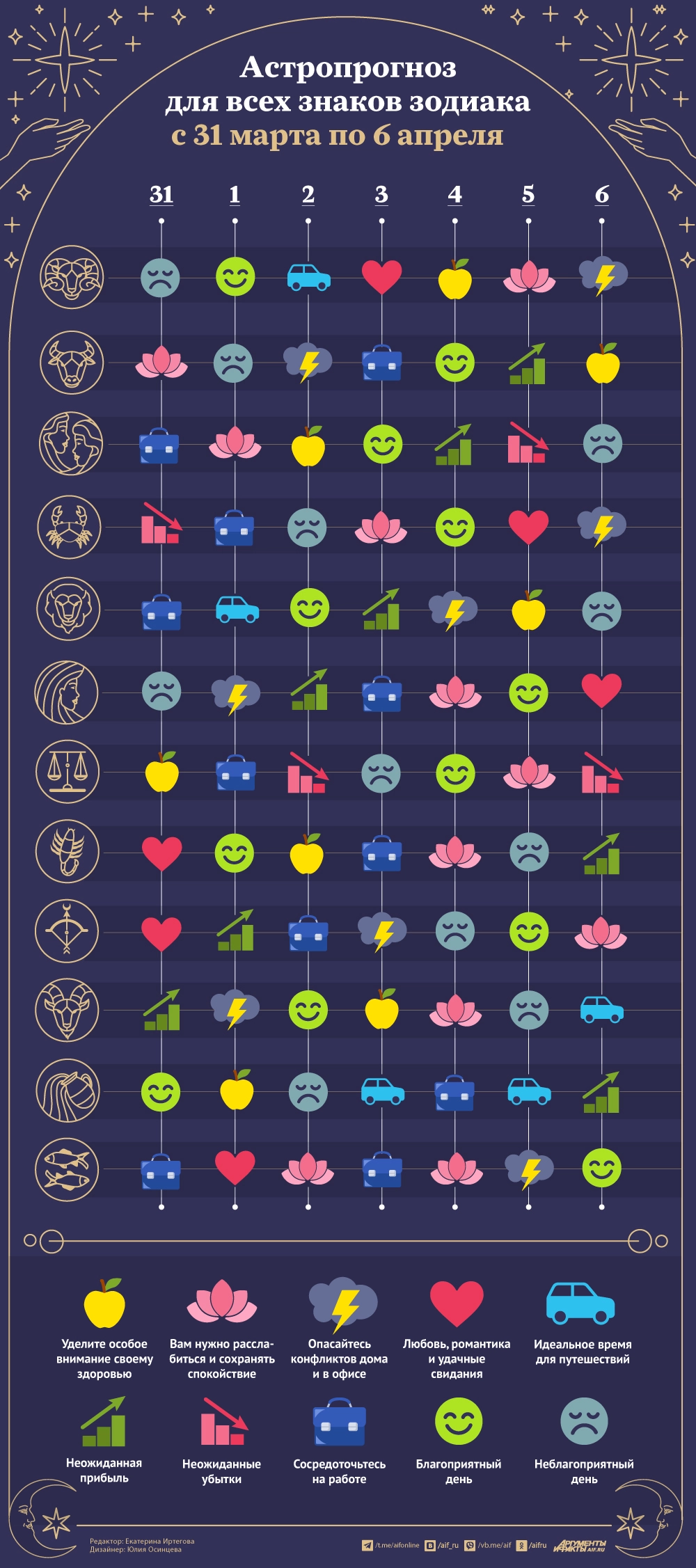 Астрологический прогноз с 31 марта по 6 апреля 2025 года. Инфографика