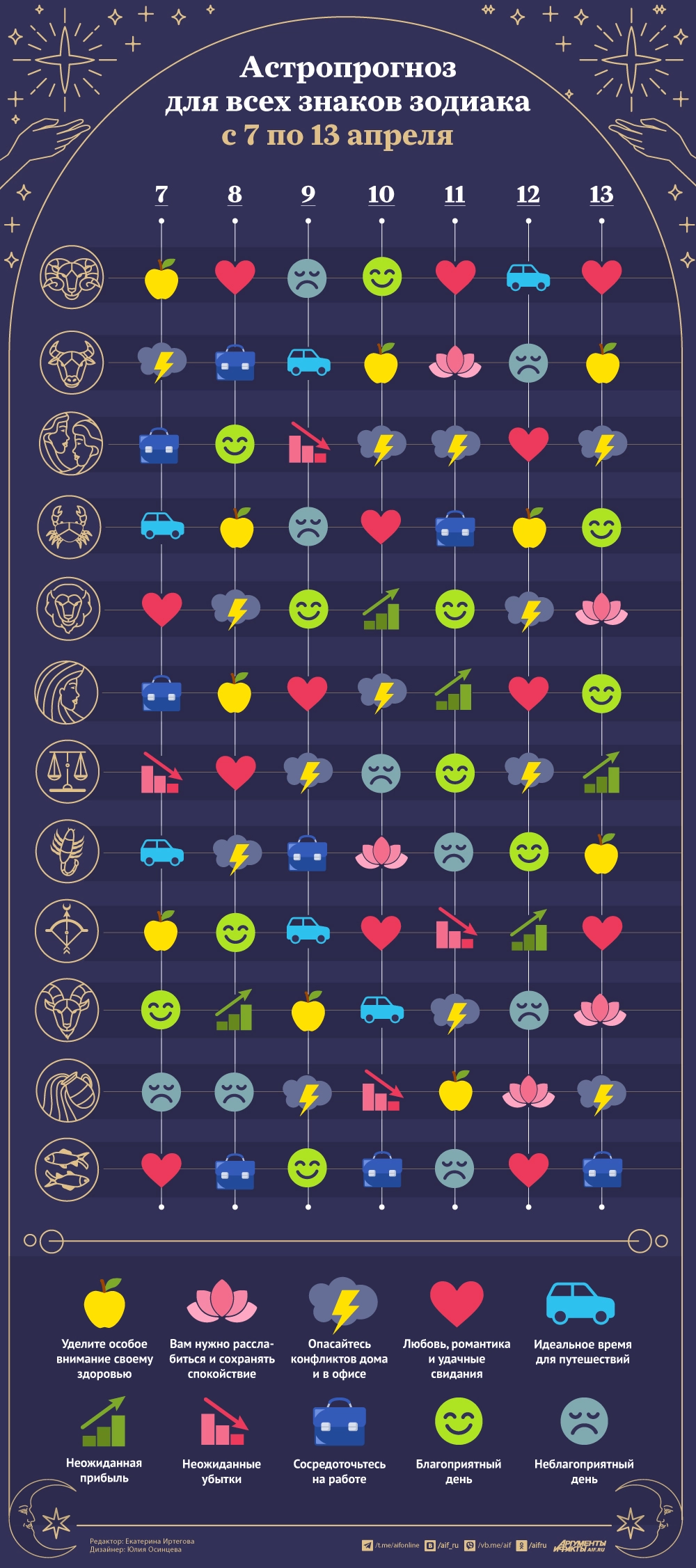 Астрологический прогноз с 7 по 13 апреля 2025 года. Инфографика