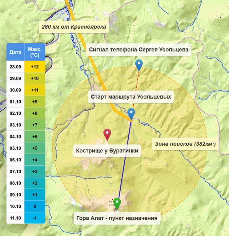 Туристический гид из Красноярского края Алексей Исиченко в беседе с aif.ru прямо заявил, что этот путь неподъемен для неподготовленной семьи с ребенком. «Гора Алат находится на достаточно большом удалении от поселка Кутурчин, где обнаружили машину Усольцевых. И оттуда, откуда семья начало свой путь, такой поход не удастся завершить за один день, тем более в сентябре, когда темнеет уже достаточно быстро».