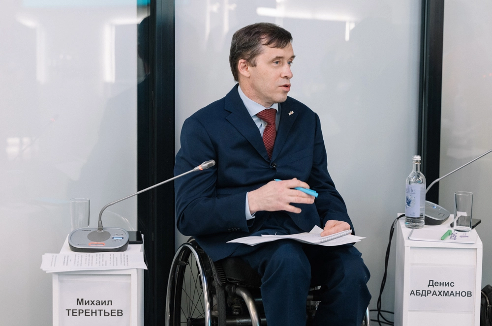 Модератором сессии выступил председатель общероссийской общественной организации «Всероссийское общество инвалидов», заместитель председателя комитета Государственной Думы Федерального Собрания Российской Федерации по труду, социальной политике и делам ветеранов Михаил Терентьев.