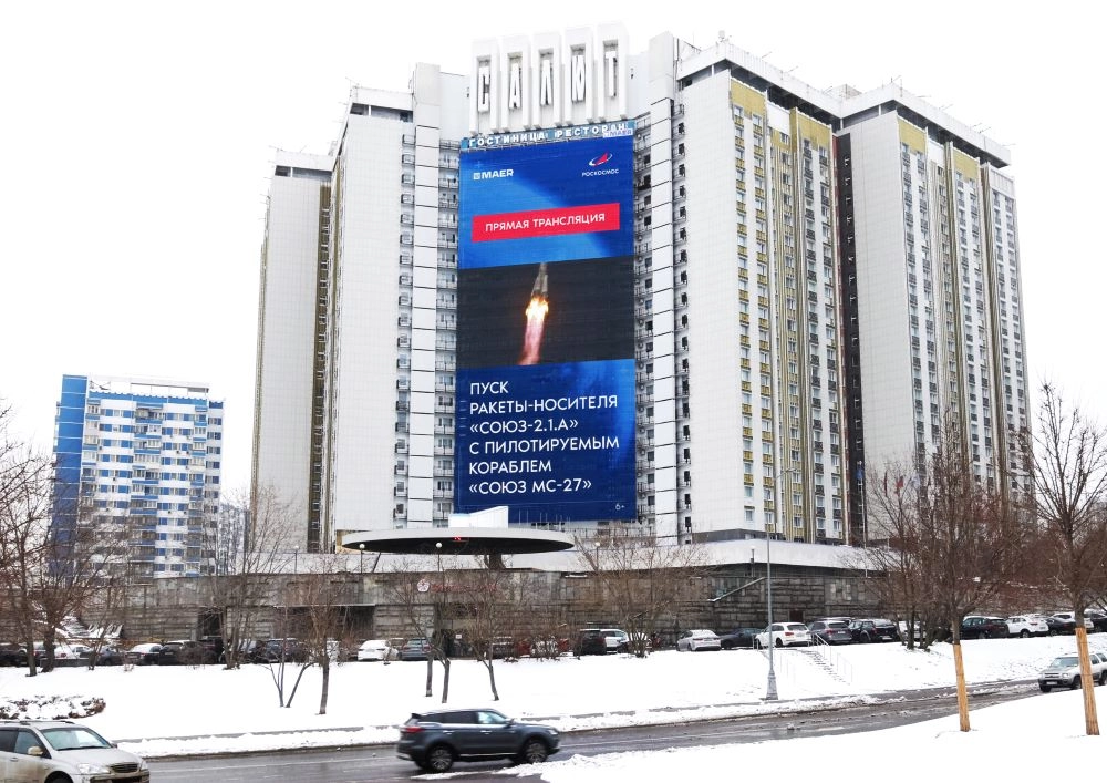 В преддверии запуска МАЕР несколько дней показывал на уличных экранах уникальные кадры тренировочного процесса в Центре подготовки космонавтов. За несколько минут до запуска анонсирующие ролики сменились кадрами с космодрома Байконур, которые в режиме реального времени на медиафасады МАЕР передавал Роскосмос. Масштабную трансляцию исторического события увидели более 2,5 млн зрителей по всей России. В общей сложности с учетом анонсов и повторов о старте узнает порядка 20 млн человек. Запуск транслировался на 250 цифровых площадках, включая уличные медиафасады в Москве, Санкт-Петербурге, Владивостоке, Казани, Новосибирске и других городах.