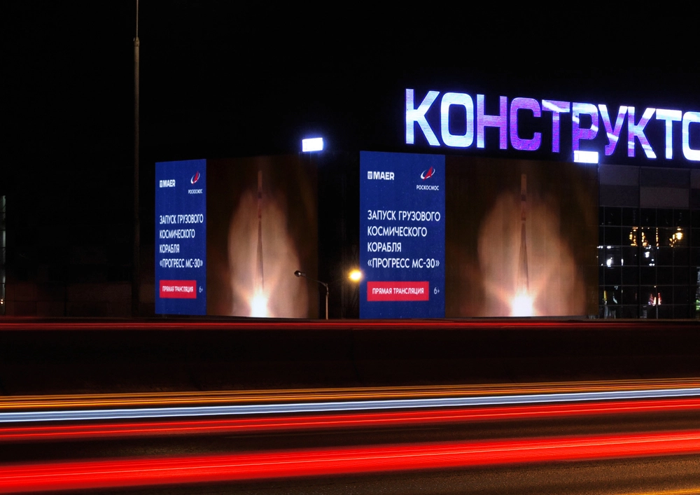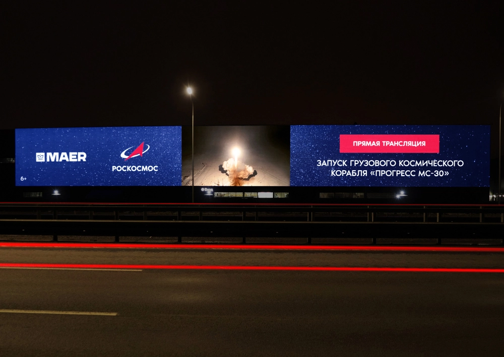 Трансляции запусков космический кораблей на уличных цифровых экранах стали привычны для жителей крупных российских городов. Только за прошлый год информационные кампании МАЕР с Роскосмосом увидели почти полмиллиарда раз. Каждая трансляция — это не только зрелище, но и важный шаг для популяризации космической отрасли.