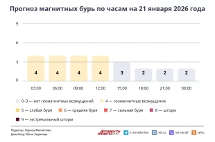 Смотрите в инфографике aif.ru, как будет меняться геомагнитная обстановка в течение дня 21 января 2026 года.